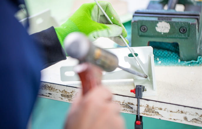 私たちは常にお客様の観点にたったモノづくり、豊富な知識や技を生かして加工方法、加工具の工夫、生産技術の改善を行い、すばやい対応を心掛けております。板材を切り出し、複雑な形状や高精度な切削加工を行い、接着や溶接によって一つの製品を実現します。お客様に満足していただける製品づくり、品質・コスト・納期はもちろんのこと、満足していただける製品作りを目指しています。