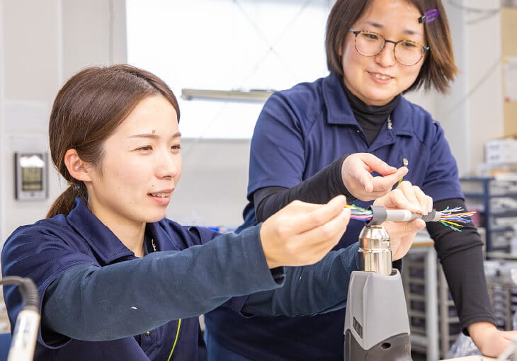 精機組立部では、大手半導体製造メーカーを主に半導体製造装置のハーネス加工を手掛けています。各種多様なハーネス製作、高い品質の実績があり、お客様より大変好評を得ています。顧客の「満足」の為、社員一同創意工夫を凝らし、日々漸次進化向上を目指してまいります。